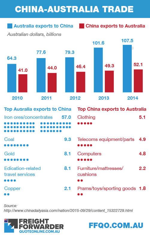 In anticipation of more import and export transactions with Australia’s leading trade partner since 2009 (total trade worth: $150 AUD billion), Freight Forwarder Quote Online Australia has been making the necessary arrangements to ensure that its clients will reap the full advantage of ChAFTA’s yields.
